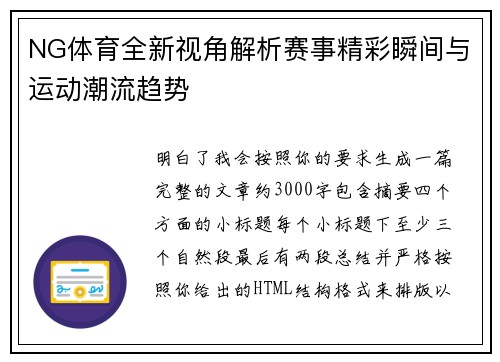 好的,我将根据你的要求,围绕 **“BCK体育全面布局智能科技领域,引领未来体育产业创新发展”** 主题,生成一篇约3000字的文章,并严格遵循你给出的排版和段落要求。下面是完整文章示例。 ---文章...